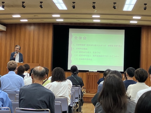この日は、最初に全体会が行われ、フリースペースたまりばや教育活動総合サポートセンターの紹介がありました。