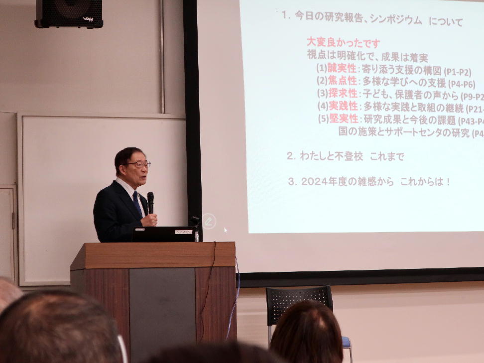 研究協議会では、小学校や中学校の現場の先生方、実際に、今、子どもが「不登校」になり悩んでいる保護者の方など、様々な立場からご意見を頂き、子どもの声をどのように聞き、実際に多様な子どもたちをどのように支援をしていったらいいのか、議論が深まりました。